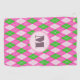 Dieses personalisierte Damenhandtuch ist mit rosa und grüner Raute und einem individuell anpassbaren Monogramm auf rosa Untergrund ausgestattet. Es ist ein stilvolles, niedliches Geschenk für einen Golfer. Es ist ein nützliches Geschenk für deine Mutter, Schwester, Oma oder jede Dame, deren Hobby Golf spielt. Golftücher für Frauen in Monogramm. Rüsten Sie Ihr Spiel und Ihren Stil mit unseren individuellen Golf Handtüchern, die perfekt für den behalt Ihres Gerätes sind. Ob Sie selbst oder der Golfer in Ihrem Leben einkaufen, unsere personalisierten Golfhandtücher zum Verkauf sind ein Gaumenfreuden. Diese Handtücher aus ultraabsorbierender Mikrofaser sind weich, haltbar und schnell trocknbar und eignen sich ideal für Schweiß, Schmutz und Feuchtigkeit. Wählen Sie aus einer Vielzahl von niedlichen Golfhandtuchdesigns oder erstellen Sie Ihr eigenes, individuelles Handtuch mit Namen, Initialen oder Logos. Diese Damengolfgeschenke wurden speziell für Golferinnen konzipiert und sind eine durchdachte Möglichkeit, Geburtstage, Ferien oder besondere Meilensteine zu feiern. Egal, ob sie eine ernsthafte Spielerin ist oder einfach nur eine sonnige Runde mit Freunden Liebe, diese einzigartigen Golfaccessoires verbinden Charme, Funktion und Personalisierung. Perfekt, um für sie unvergessliche Golfgeschenke zu kreieren, ist jeder Gegenstand Teil einer kuratierten Kollektion von maßgeschneiderten Golfgeräten und personalisierten Golfartikeln, die nur für die Liebe des Spiels bestimmt sind.