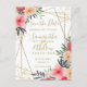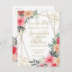 Ein romantisches und elegantes florales Wasserfarben Hochzeitseinladung Party mit handgemalten pastellfarbenen Rosa , hellroten, dunkelgrauen, blauen und gelben Blumen Anordnung und moderne und schicke Schrift Kalligrafie mit Gold Glitzer Konfetti mit goldenen geometrischen Rahmen terrarium.