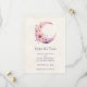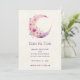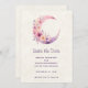 Save the Date mit einer hübschen Abbildung mit einem sanften Rosa und lila Halbmond. Hübsche, rosa und gelbe Wildblumen schmücken diesen Himmelskörper.