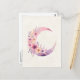 Eine Postkarte mit einer hübschen Abbildung mit einem weichen rosa und lila Halbmond. Hübsche, rosa und gelbe Wildblumen schmücken diesen Himmelskörper.