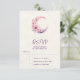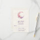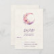 RSVP-Karte mit einer hübschen Abbildung mit einem weichen rosa und lila Halbmond. Hübsche, rosa und gelbe Wildblumen schmücken diesen Himmelskörper.