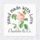 Hübsch rosa Rosa Blume Motiv und individuelle Textetiketten, ideal für alle, die Produkte für Freunde oder für den Verkauf in kleinen Unternehmen herstellen. Hier mit einem Blumenbild und Text, der Hand Made With Liebe lautet, all dies und Ihr Name/Firmenname sind vollständig editierbar, ohne Aufpreis.