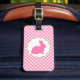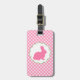 Die Silhouette eines niedlichen rosa Häschens sitzt innerhalb eines weißen Blumenrahmens mit einer Frühlingsgrüngrenze. Süße, rosa und weiße Gingham-Karos bilden den Hintergrund.