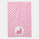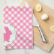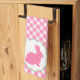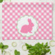 Die Silhouette eines niedlichen rosa Häschens sitzt innerhalb eines weißen Blumenrahmens mit einer Frühlingsgrüngrenze. Süße, rosa und weiße Gingham-Karos bilden den Hintergrund.