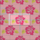 Die Stoffe zeigen eine originale Markerabbilderung tropisch-rosa Hibiskus-Blume mit grünen Blätter, die auf einem hellrosa Hintergrund gedruckt sind.