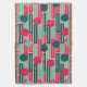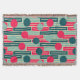 Diese wirbellose Decke hat ein modernes Design aus sich wiederholenden Rechtecken in Rosa, aquamarin und Blau, mit Kreisen oben.
