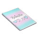 Weich rosa, hellblau und weiß gezeichnete Herzen auf einem Hintergrund mit transflaggen Farben und Ihrem Namen Notebook