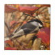 Ist hier eine herrliche Keramikfliese, die einen süßen Chickadevogel in einem Blaubeerbusch kennzeichnet. Das Blätter hat reizende Herbstfarben von rosa, von Rot und von Gelb gedreht.