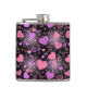 rosa Herz Muster 01 Schwarzes BG Flachmann