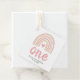 Niedlicher First Birthday Gunst Tag mit einem boho Regenbogen in mutierten Pastellfarben und einem rosa Herz in der Mitte. Unten ist "eins" im Skript zusammen mit Ihrem Namen, Event Titel und Datum. Die Rückseite hat Ihre personalisierte Danksagung Nachricht. Diese benutzerdefinierten Gefälligkeitstags sind eine gute Möglichkeit, den Gastgeschenken eine persönliche Touch für die erste Geburtstagsparty Ihrer Tochter hinzuzufügen.