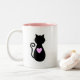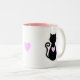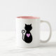Rosa Herz und schwarze Katze Zweifarbige Tasse