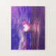 Jigsaw Puzzle mit meinem 3D-Kunstwerk eines strahlenden rosa Herzens, das auf reflektierendem Wasser schwebt.