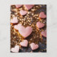 Rosa Herzen auf goldenem Glitzer Boden Valentine's Postkarte