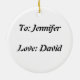 Dieser Gegenstand ist ein rosa Herz-Ornament für deinen Weihnachtsbaum. Es gibt auch eine Vorlage auf der Rückseite, die Sie ändern können die Namen, um es persönlicher zu machen, von sich zu jemand Besonderem.