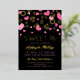 Rosa und goldene Sweet 16 feierliche Einladung in Schwarz mit rosa Herzen und goldgeflochtenen Konturen von Edelsteinen. Glam süß 16 Party Einladungen in Rosa, Schwarz und Gold. Girly 16 . Geburtstag Einladung mit Goldfolie und rosa Text, rosa Herzen und goldenen Edelsteinen.