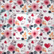 Modernes und romantisches Design aus rosa Rosen und Herzen mit blumengeschmückten Blätter, ein hübsches Gewand, um Liebe und Valentinstag zu feiern.