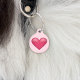 Rosa Herzform auf hellrosa mit Infos des Hauses Haustiermarke