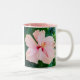 Kaffee-Tasse kennzeichnet das Foto eines zart farbigen rosa Hibiskus und blüht in Hawaii.The Hibiskus, ist eine populäre tropische Blume.