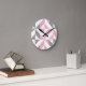 Rosa Himbeere und Silver Geometric ZigZag Runde Wanduhr