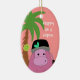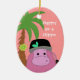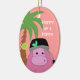 Rosa Hippopotamus mit Palmenbaum Keramik Ornament