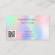 Ein angesagter holografischer Hintergrund mit eintönigen Farben und Regenbogenfarben in Rosa, lila, Rose Gold, Minzgrün. Dekoriert mit Imitaten Glitzern. Auf der Vorderseite: Fügen Sie Ihren Rabatt hinzu. Zurück: Personalisieren Sie Ihren Namen, Titel, Telefonnummer, E-Mail, Website-Adresse, qr-Code auf Ihrer Website. Lila Buchstaben. Ohne Glitzern auf der Rückseite.