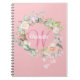 Hübsches rosa erstes Monogramm-Notizbuch mit einem schönen weißen Skriptnamen, der durch eine zarte Blumengarne in Aquarellfarben auf pfirsichrosa Rose gerahmt wird. Personalisieren Sie sich, um ein besonderes Geschenk zu erhalten! Entwickelt von Thisisnotme©