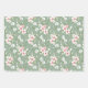 Die rosa und weiße Blüte auf einem grünen Hintergrund umhüllende Papierblätter - eine reizvolle Verschmelzung von Shabby Chic und zeitloser Eleganz. Perfekt für Geburtstagsgeschenke, Brautparty Geschenke, Hochzeitsgeschenke und Babygeschenke. Drei Packpapierblätter in diesem Set.