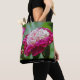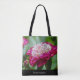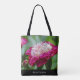 Schöne rosa Hütte mit anderen Blume im Hintergrund. Diese Tasche dreht sicher den Kopf, während du sie herausbringst. Es ist eine stilvolle und praktische Ergänzung zu Ihrem alltäglichen Kleiderschrank. Personalisieren Sie Ihre Daten mit Ihrem Namen oder einem anderen Text am unteren Rand.