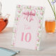 Dieses Tischnummer-Zeichen zeigt eine rosa Kohlensäure-Rose im Hintergrund mit einer abgerundeten rosa Kastenform, die Ihre Tischnummer mit einem niedlichen rosa Bogen verankert.