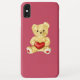 Kundengerechter rosa Teddybär iPhone Fall mit einem niedlichen Teddybären, der ein rotes Herz hält und Sie mit seinem unblinking Anstarren, auf weichem rosa Hintergrund hypnotizing. Dieser reizende umarmbare Teddybär iPhone Fall würde ein großes Geschenk für Kinder oder jemand Sie Liebe sein.