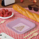 Diese Platte ist eine niedliche Ergänzung zu dieser Kollektion und hat einen zweifarbigen rosa Hintergrund und den "Weihnachten"-Baum in der Mitte. Eine Ergänzung zur kleineren Platte in dieser Kollektion.