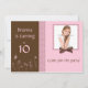Hübsches Foto Einladung in Kakao und Rosa mit Polka Dotakzenten und Bogen. Perfekte Einladung für Mädchen jeden Alters. Einfach mit den Details Ihrer Veranstaltung und Ihrem eigenen Foto anpassen.