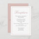 Mit dieser eleganten Empfang-Karte, die in einer rosa, blütenfarbenen Farbgebung mit einer stilvollen und eleganten Farbpalette gestaltet ist, verleihen Sie Ihrem Hochzeitsgeschenk eine elegante Touch. Mit stilvollem Kalligrafieschreiben und klassischer formaler Typografie verbindet es Schönheit und Funktionalität perfekt. Die beiliegenden QR-Code-Hochzeitsdetails ermöglichen einen einfachen Zugang zu Ihrer Hochzeitswebsite und eine moderne Online-Antwort. Teilen Sie einfache Gästeunterkünfte und alle wesentlichen Informationen Web in einem chic Design.