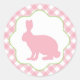 Rosa Kaninchen-Gingham-Karos rund Aufkleber