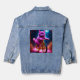 Rosa Katze auf einem Landschaftlichen goldenen Rad Jeansjacke