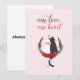 Zwei Katzen – schwarz und weiß – sitzen ineinander verschlungen, ihre Schwänze bilden ein Herz, umrahmt von roten Rosen und grünen Blättern. Vor einem sanften rosa Hintergrund feiert diese romantische Karte Einheit und Liebe. Inspiriert von Seelenverwandten, ist sie perfekt für den Valentinstag oder Jahrestage. Verschenke Liebe, die hält.