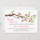 Zweig mit rosa Kirschblüten Frühling Braudusche Einladung Hochzeit Braut mit einem braunen Zweig eines Kirschbaumes mit prächtigen rosa Sakurabaum Blume und grünen Blätter. Dieses moderne elegante und stilvolle Blumendesign ist vollständig anpassbar und gehört zu einem Hochzeitsfest, das für Ihre Hochzeitsfeier im Frühling oder Sommer ideal ist.