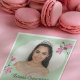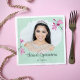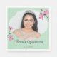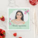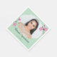 Diese Papierservietten sind fertig, um auf Ihr Foto und Ihren eigenen Text zugeschnitten zu werden. Ihr Bild ist Set in einem elegant geformten Rahmen, der von Blume und Set mit rosa Kirschblüten und einem minzgrünen Hintergrund betont wird.