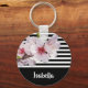 Rosa Kirsche Blume mit schwarz-weißen Streifen Schlüsselanhänger