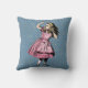 Alice trägt ein rosa Kleid mit einem blauen und goldenen Hintergrund