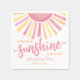 Ein kleiner Ray der Sunshine Baby Dusche Napkin. Dieses helle und fröhliche Serviettendesign besticht durch eine lebendige Sonne mit einem sanften rosa Zentrum oben, mit warmen Strahlen in Gelb-, Orange-, Rosa- und Rottönen, die Ihren Feiern eine fröhliche Touch verleihen. Unter der Sonne wird "Ein kleiner Sonnenschein" in einer spielerischen Mischung aus rosa und weiß-modernen Schriftart und fett geschriebener Typografie gezeigt. Darunter sind der Name der Mutter und das Baby Duschdatum elegant platziert und sorgen für ein personalisiertes und festliches Detail für den besonderen Tag. Vollständig anpassbar, können Sie Text, Schriftart und Farben nach Ihrem Thema aktualisieren. Diese Serviette ist eine perfekte Ergänzung zu einer Babydusche mit einem Thema zum Thema Sonne und verströmt Wärme und Charme in Ihrem Tischumfeld!