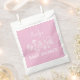 Ein rosa Coquette Modern Hand Drawn Baby Shower Party Dekor Gunst Tasche Design typisch kombiniert skurrile, spielerische Elemente mit einer zeitgenössischen Ästhetik. Die Größe ist Standard und beliebt, aber andere Formate sind verfügbar. Die dominierende Farbe ist die sanfte, rot-rote Farbe, die ein sanftes, feminines Ambiente schafft. "Coquette" schlägt ein zauberhaftes Ambiente vor, mit feinen, handgezeichnet Illustrationen von Elementen. Moderner typografischer handgeschriebener Schriftart mit minimalistischen serifenlosen Schriftart für ein ausgeglichenes, raffiniertes Aussehen. Diese Einladung weckt ein Gefühl von Wärme und Aufregung für die bevorstehende Feier, die Freude einer Babydusche mit einem On-Trend, künstlerisches Design vermischt.