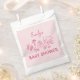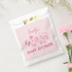 Ein rosa Coquette Modern Hand Drawn Baby Shower Party Dekor Gunst Tasche Design typisch kombiniert skurrile, spielerische Elemente mit einer zeitgenössischen Ästhetik. Die Größe ist Standard und beliebt, aber andere Formate sind verfügbar. Die dominierende Farbe ist die sanfte, rot-rote Farbe, die ein sanftes, feminines Ambiente schafft. "Coquette" schlägt ein zauberhaftes Ambiente vor, mit feinen, handgezeichnet Illustrationen von Elementen. Moderner typografischer handgeschriebener Schriftart mit minimalistischen serifenlosen Schriftart für ein ausgeglichenes, raffiniertes Aussehen. Diese Einladung weckt ein Gefühl von Wärme und Aufregung für die bevorstehende Feier, die Freude einer Babydusche mit einem On-Trend, künstlerisches Design vermischt.
