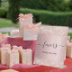 Ein rot rosa Farbverlauf mit Konfetti. Die Favoriten werden mit einem modernen handgeschriebenen Stilskript mit Swashes geschrieben.