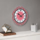 Wanduhr mit rosa Koralle, schwarz und weiß karierte Grenze. Wählen Sie aus der Rund- oder Quadrat-Uhr.