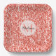Rosa Korallen hellpastellfarbene Glitzern Monogram Pappteller