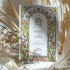 Diese bezaubernde Jugendstil-Hochzeitseinladung besticht durch eine wunderbar detaillierte Blumengrenze mit weichen rosa Kosmos-Blume, gelben Wildblumen und zarten grünen Blätter. Das symmetrische Design zeigt komplexe Linien und verzierte Muster, die die Anmut und Eleganz des Jugendstils verkörpern. Feine Pastelltöne in Rosa, Gelb und Grün harmonieren harmonisch und schaffen eine zeitlose und romantische Ästhetik. Ideal für Paare, die eine naturlich inspirierte, Vintage Hochzeitsstätte mit künstlerischer Raffinesse suchen.