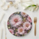 Zarte, rosa Kosmos-Blume mit dünnen, durchsichtigen Blütenblättern werden zusammengefasst, umgeben von goldenen Blätter auf schwarz