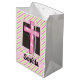 Rosa Kreuz auf rosa und grüne Streifen Mittlere Geschenktüte