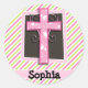 Rosa Kreuz auf rosa und grüne Streifen Runder Aufkleber